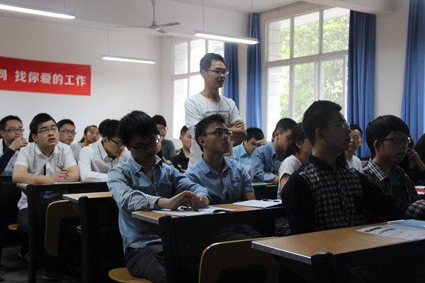前来听讲的大多数是计算机科学学院的大三、大四学子,他们正处于求职阶段,正需要一些关于就业的指导。当谈到如何选择职业的问题时,邱爽回答道:“选择职业要有四个原则:择己所爱,择己所长,择世所需,择己所利”。同时他将职业生涯规划分为四个阶段,同时强调道,具体的计划可以做出改动,但一定要确立好自己的目标。在面试及简历制作方面,他也向大家分享了许多有用的技巧。