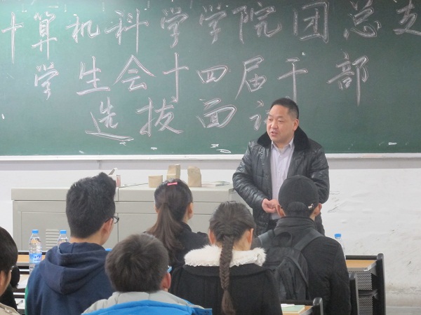 为进一步促进计科学院团总支学生会干部队伍的持续发展,为我院学生会注入新的活力,使学生会的各项工作更好地服务于我院同学的成长成才,2014年3月23日,2014—2015学年我院学生会各部门干部选拔面试于一教301进行。本次面试由党总支副书记徐大军、辅导员李倩倩、吴昊、刘丽娜,主席团成员及各部门部长担任评委。