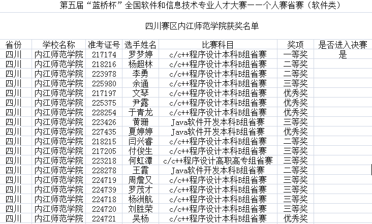 4月3日,“蓝桥杯”大赛组委会传来喜讯:我院2011级2班学生罗梦婷在四川省“蓝桥杯”C/C++程序设计本科B组中获得一等奖。