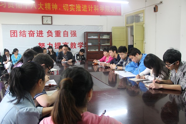 会议伊始,主席黄文善首先安排了学生会各部门近期的重要学生活动和相关工作,并希望学生会各部门积极行动起来。随后,各部门干部分别就自己相关工作展开了讨论与交流,制定下了本学期的工作计划。接着,计科学院团总支书记李倩倩老师希望大家多开展各种有意义的素质活动,努力争取到全国A级证书以及国家励志奖学金。并要求全体学生会干部做好表率作用,在以后的学习生活中把握好每一次机会。