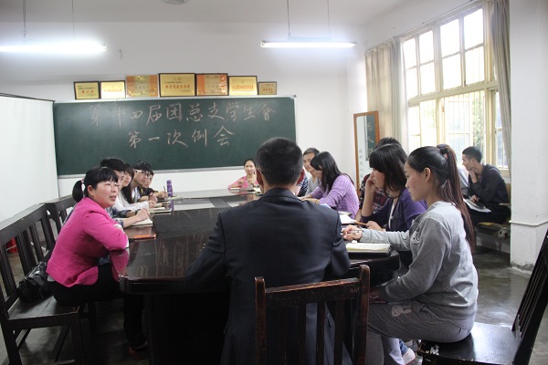 4月8日下午6点10分,计科学院第十四届团总支学生会在原系办会议室召开了第一次例会,团总支书记李倩倩老师出席了本次会议,学生会干部以及各班班长均参加了此次例会。本次会议由计科学院主席黄文善主持。