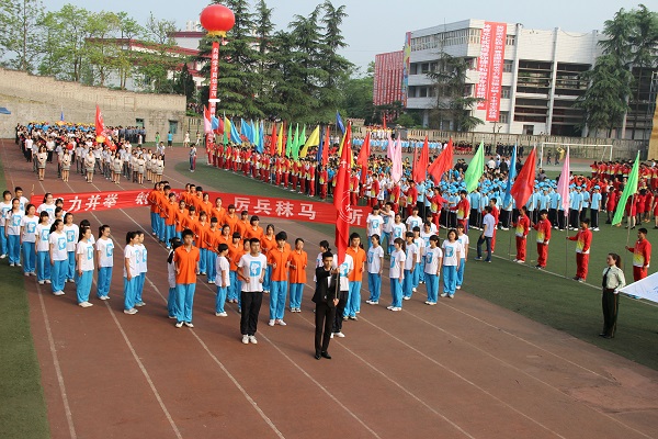 庄严的升旗仪式结束后,校长谢峰致开幕辞。他强调道:“要赛出成绩、赛出风格、赛出水平、赛出友谊,实现比赛成绩和精神文明双丰收。”