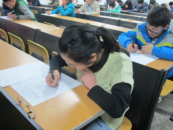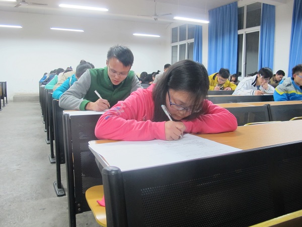 考试进行中每个学生都非常认真的对待此次考试,严谨认真地答每一个题,没有一人出现交头接耳,扰乱考场秩序的现象。两个小时后,每一个学生都交上了令自己满意的那份答卷,本次考试圆满结束。