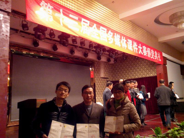 2013年11月9日-11日,第十三届全国多媒体课件大赛现场决赛在北京举行。经过激烈的角逐,计科学院张凯副教授、刘益和教授、陈艳华老师、阳冉同学、代磊同学制作的多媒体课件《VFP程序设计》课件获高教工科组一等奖,这是我校首次参赛并获得一等奖,是“零”的突破,填补我校空白。