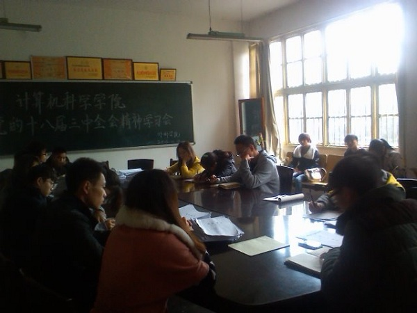 11月18日中午12:00,计科学院团总支学生会在原系办召开了“党的十八届三中全会精神学习会”,团总支学生会的所有成员参加了这次学习会。