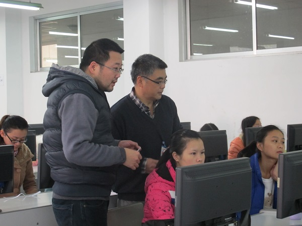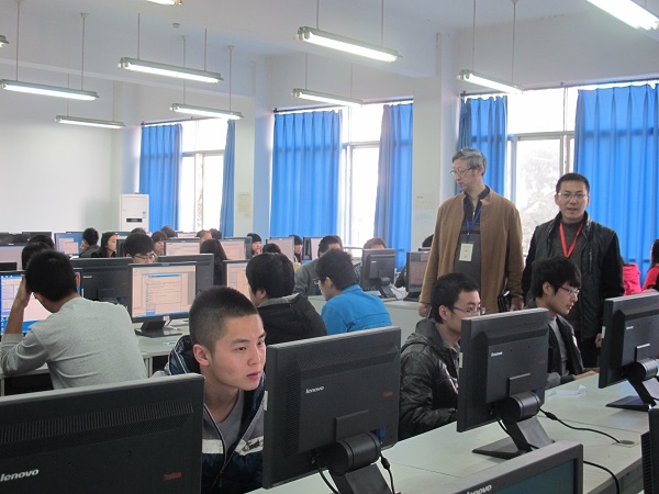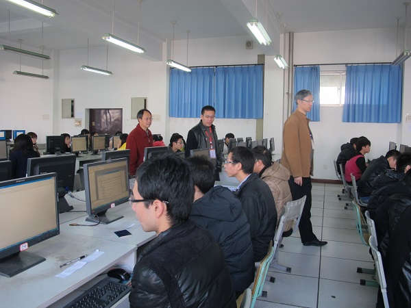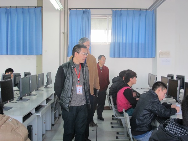 在选拔赛过程中,连同教务处汪处长在内的三位领导和计算机科学学院院长刘益和、党总支副书记徐大军、副院长李尧到现场进行了指导和巡视,观看同学们考试的情况。在答题过程中,同学们先是仔细阅读了题目,然后经过一番短暂的思考,灵活的手指在各自的键盘上熟练地操作着。答题状态中的同学都一丝不苟、全神贯注地答题,充分发挥他们的专业知识做好每一道题目。历时三个小时,选拔赛顺利完成。
