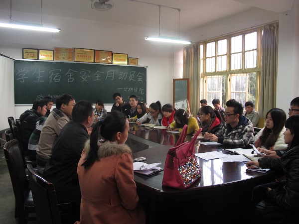 为加强对在校学生的管理,12月2日下午5:30,我系党总支副书书记徐大军、辅导员吴昊老师、刘丽娜老师以及20多个学生代表在计科学院原系办开展了“学生宿舍安全月”动员大会。