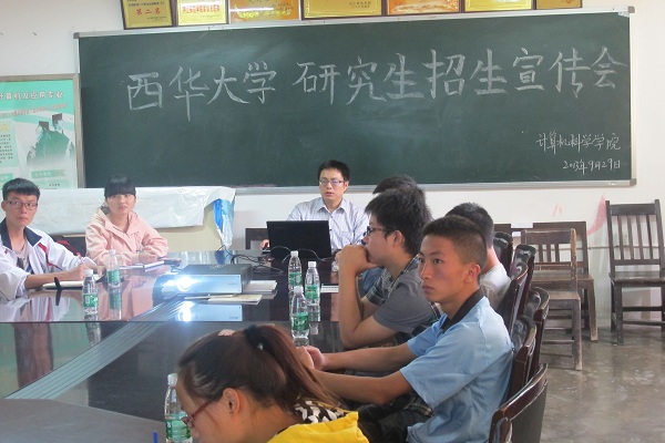 9月29日下午2点,西华大学研究生招生宣传会在计算机科学学院原系办会议室召开,西华大学副教授余强、计算机科学学院辅导员刘丽娜老师出席了本次会议,学生会主席蒲勇以及有志于考研的学生代表参加了此次宣传会。