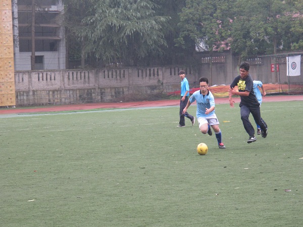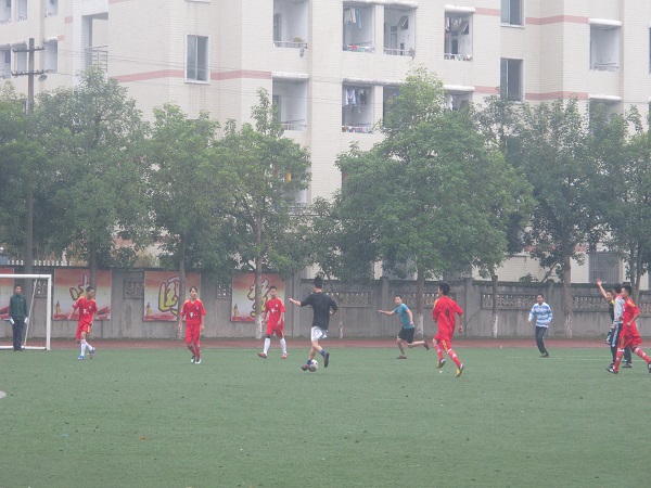 下半场易地再战,客队12级对战13级1.2.5班,12级球员进攻依旧抢眼。但13级球员没有放弃,依然积极防守,无奈13级球员进攻能力稍弱,没能对12级守门员构成威胁,最终12级将比分定格为3:0。客队11级对12级3.4班时,经过半场休息,11级球员重新调整状态,比赛刚进行到不过两分钟,11级球员机智从后方一脚大力射门,比分改写为1:1。13级球员试图进行反扑,但11级球员团队实力强大,球始终没能送进11级球门。随后11级球员田永建奋勇破门,将比分定格为2:1。