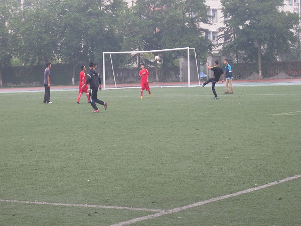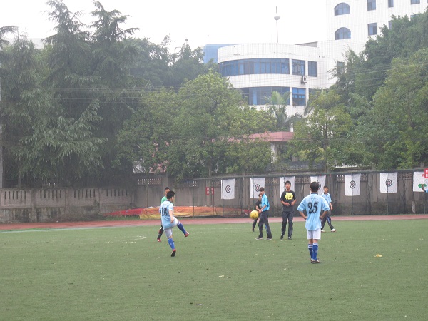 10月16日,计科学院“迎新杯”足球赛第二天,比赛在中午12:30精彩开赛,足球赛赛制分为上下两半场,分别为客队12级对战 13级1.2.5班,客队11级对12级3.4班。天空中飘着细雨,场上吹着寒风,但丝毫未影响到各球队球员比赛的激情。