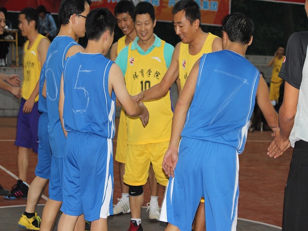 10月21日下午6点10分,我校教职工篮球比赛在灯光球场拉开了帷幕。本次篮球比赛由计科学院与化工学院组成的队伍对战学校最强的队伍——体育学院。