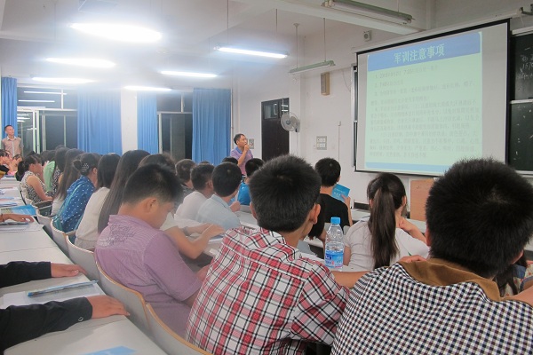 会上,首先院长刘益和发表了重要讲话,首先欢迎新同学加入计算机科学学院,并对计算机科学学院的专业情况、学生就业情况做了详细的介绍,让新同学更加深入地了解计科学院,还对新生提出了三点要求:1、要尽快适应大学的生活环境;2、要学会生存、学会做人、学会认知;3、要树立正确的人生目标。随后,党总支副书记徐大军发表讲话,具体强调了三点要求:1、要学会学习、学会做人、学会独立自主;2、要不断的自我完善;3、要有梦想与目标、保持顽强的拼搏精神。接着吴昊老师向新生强调了大学军训的重要性,讲解了军训期间的注意事项以及军训纪律,希望新生能够顺利完成15天的军事训练。最后学生会主席蒲勇介绍了本科班和专科班的班主任、各班的班助以及各班的代理班长,方便以后新生遇到什么困难能更好地得到解决。