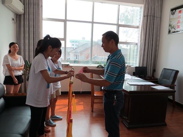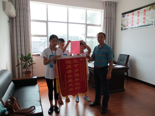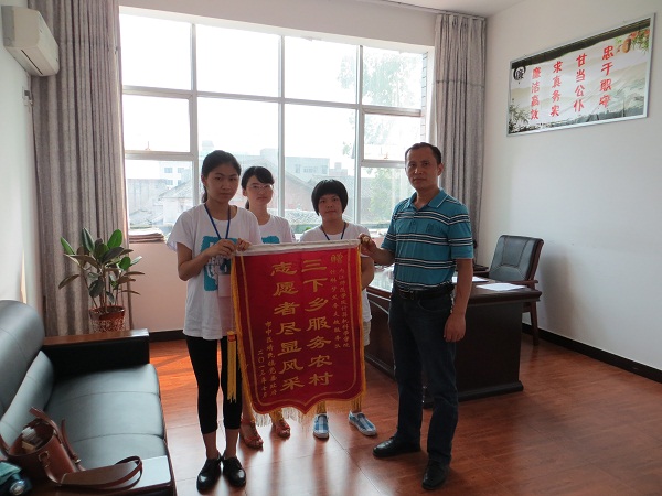 在此期间,当地政府也大力支持我们的工作并给予了我们很多的建议。靖民政府党委副书记罗书记说:“非常感谢你们大学生能够来到我们这里和我们一起来关爱这些留守儿童和对小孩的教育,我们衷心地希望有更多的大学生能够来到这里。”在最后还授予了我们锦旗。这些都我们工作的肯定和认可。我们也非常地感谢靖民政府能给我们提供这样地一个机会,让我们体会到做这样一份工作的意义。