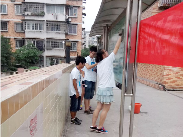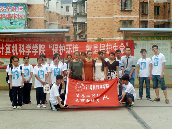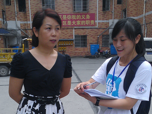 7月17日上午,计算机科学学院“生态环保行,美丽甜城梦”社会调查团的志愿者团队在校学生会副主席胡飞的带领下来到东兴区中心凤凰社区。在社区服务中心的夏祖兰,王俊,赵安琼三位副主任的积极引导和大力支持下,我们开始了以“生态环保行,美丽甜城梦”为主题,“凤凰社区”为对象展开了调研活动。此次活动将志愿者们分为两队,一队负责对社区内居民环保意识,环保情况作详细的调查统计。另一队负责清洁社区内的公共设施,简单的工作部署之后,便各自开始了行动。