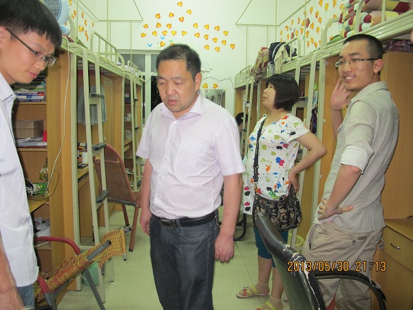 此次检查主要针对学生寝室的安全问题。在检查过程中,徐书记十分关切地询问同学们在学习生活中是否遇到困难,提醒同学们在天气炎热时更要注意寝室安全、卫生等问题,希望同学们一如既往地把寝室卫生工作做好,争取成为不仅学习成绩优异并且其它方面也同样优秀的计科学子。