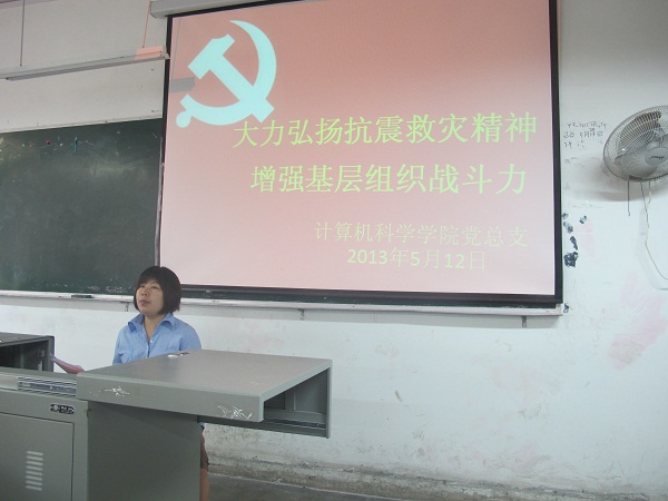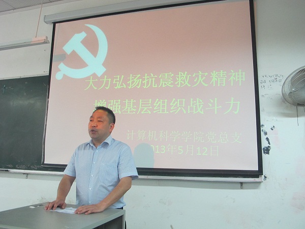 5月12日早上9点,我院组织各班代表在一教105举行以“大力弘扬抗震救灾精神,增强基层组织战斗力”为主题的5·12 五周年纪念大会。党总支副书记徐大军出席本次会议并做了重要讲话。