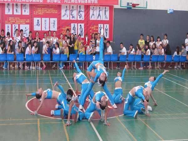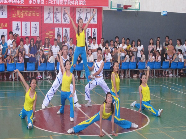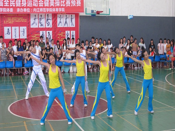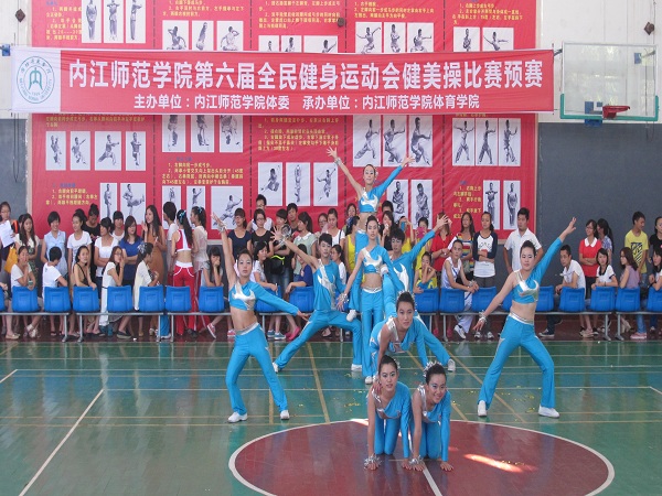 5月26日下午2:00,内江师范学院第六届全民健身运动会健美操比赛预赛在体育馆举行,参加本次比赛是各个二级学院的代表队。