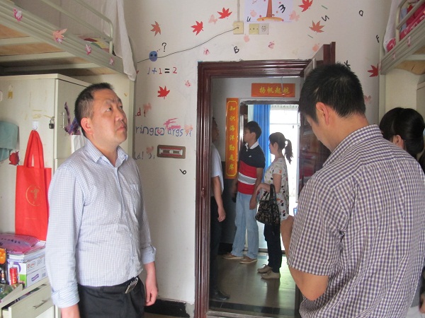 4月24日下午四点,学生处副处长陈敏等一行在计算机科学学院党总支副书记徐大军以及辅导员李倩倩老师、辅导员吴昊老师的陪同下来到计科学院大三寝室视察“文化进宿舍”活动的成果。