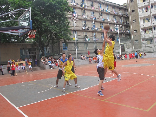 5月11日下午2点30分,内江市2013年高校全民健身运动会三人制篮球赛在我校灯光球场举行,我院男篮、女篮两支队伍参加了这场比赛,我院男篮对阵数信学院,女篮对阵生命科学学院。到场的还有由学生会及我院各班组成的拉拉队员。