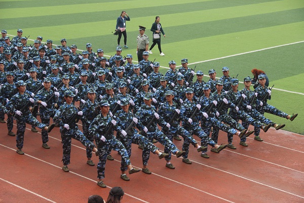 下午2点30分,大会正式开始。我院党总支书记徐大军,院长刘益和出席此次汇报会。在庄严的升旗仪式后,伴随着雄壮的分列式进行曲,各方队踏着豪迈的步伐,精神抖擞地走过主席台,接受主席台领导的检阅。我院学子那坚定有力的步伐、整齐划一的动作和威武飒爽的英姿,赢得了与会领导的阵阵掌声。分列式结束后,又进行了表演方队展示。其中,由我院学子加入的单兵战术及擒敌拳表演,反恐战术表演,朗诵表演,队形变换方队等接踵而至。充分展现了我院学生的朝气与活力。最后,全体新生共同演绎《感恩的心》,以一支手语舞表达了对教官以及学校领导、老师的感恩之情。
