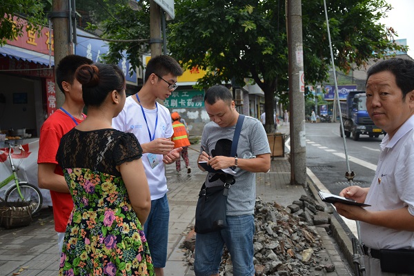 上午九时许,我院党总支书记徐大军和辅导员吴昊来到了我们宣传点,并对我们的活动成果寄予了高度的肯定和表扬,我们的活动还受到了当地晚报记者的采访,老师们和我们一起耐心地为来往的居民讲解我们的宣传服务,在后续的活动,书记还和一个路过的当地的老爷爷进行了交谈,爷爷表达了自己对党的敬重和对我们学校的肯定,认为为人师表是最具高品格的事。并对我们的行为提出了表扬。