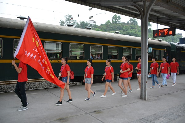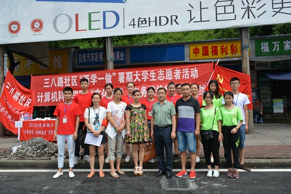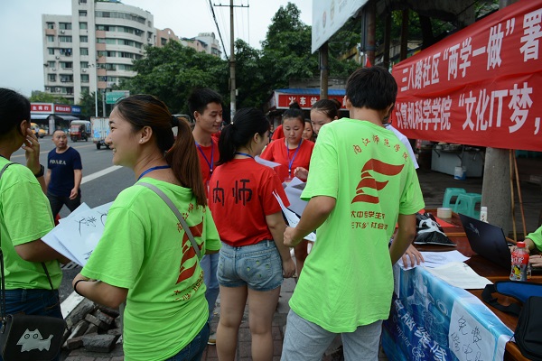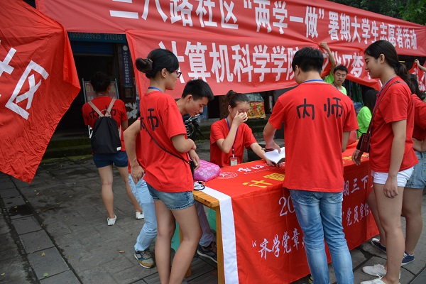 今天是7月13号,即便才下过雨,天气还是有点闷热。我们大清早跟随内江师范学院计算机科学学院的电脑维修队一起来到了自贡,进行我们“两学一做”的宣传服务活动。