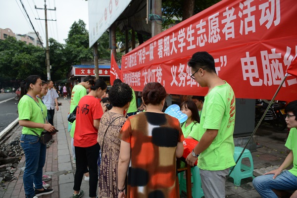 党员的最终宗旨就是为人民服务,实实在在为人民做事,经过了前几天的“学”,今天我们把“做”落到了实处,免费为居民维修电脑。当地政府很热情的接待我们,为我们提供了场地以及活动物资。我们将宣传服务点设在了火车站附近,当地小区的组委会同志对我们也都很积极热情,我们便开始了今天的活动。我们走街串巷,到处宣传我们的活动,目的就是发扬人民服务的精神。