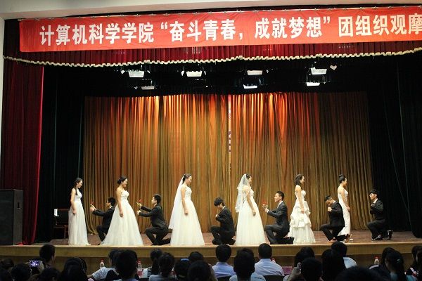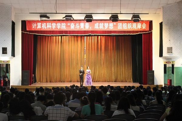 2014年6月5日晚7点整,由计算机科学学院团总支学生会主办的计科学院团组织观摩会在西区礼堂隆重开幕。出席此次团组织观摩会的嘉宾有我院党总支副书记徐大军、辅导员吴昊老师、辅导员刘丽娜老师、班主任李游老师、校团委代表及各二级学院团总支代表。