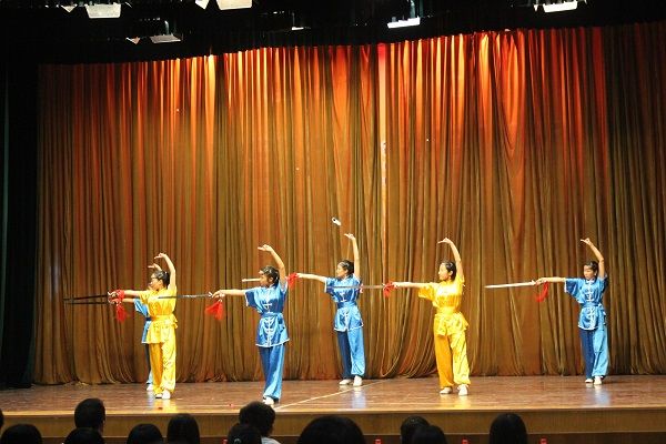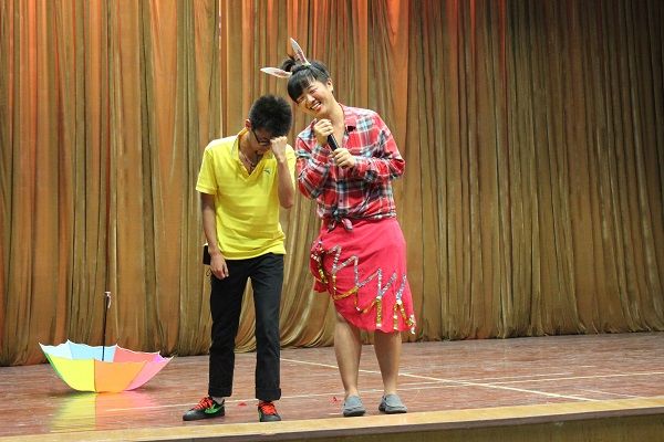 第一个出场的时装秀表演就牢牢地抓住了观众的眼球:六位盛装“新娘”和六位帅气“新郎”一一优雅地上场,而后新郎们更是单膝跪地献上六朵灿烂红色玫瑰,让舞台充满温馨与浪漫的气息,引得台下欢呼声不断。歌曲串烧,两位演员在最后合唱了一曲《蓝莲花》,它饱含着对希望和自由的追求,让我们体味到了那份追求梦想的执着和热情。男儿豪气飞扬,挥出双节棍的豪迈和大气,女子英姿飒爽,演绎剑术的柔美和凌厉,接下来的这精彩的武术表演,展现的就是悠久的中华武术魂。动感十足的街舞表演开始了,他们的鬼步舞诡异而充满魅力,忽左忽右的舞步更是让大家为之喝彩。话剧《嫦娥征婚记》笑点满溢:五大三粗的汉子徐舟化身为甜美娇憨的红色玉兔,而瘦小的“牛魔王”、啰嗦的“唐僧”和“孙悟空”、“八戒”等人的爆笑求婚更是让人忍俊不禁,末尾却出人意料,嫦娥原是紫霞仙子,而本以为历经曲折抱得美人归的孙悟空,却被看破空口诺言的紫霞无情刺死。吉他弹唱,王丹怀抱吉他,一曲《天空之城》从她手间流淌而出,而她那优美温柔的歌声,让礼堂也仿若那天空之城般的宁静空明,观众们静静地认真聆听着,为之所陶醉。演出最后出场的是曾代表我院参与武术运动会的女子健美操团队,她们身着缠绕着雪白云纹的蓝色运动服,踩着极具动感的音乐节奏起舞,她们用干净而飒爽的舞姿,征服了在场观众。
